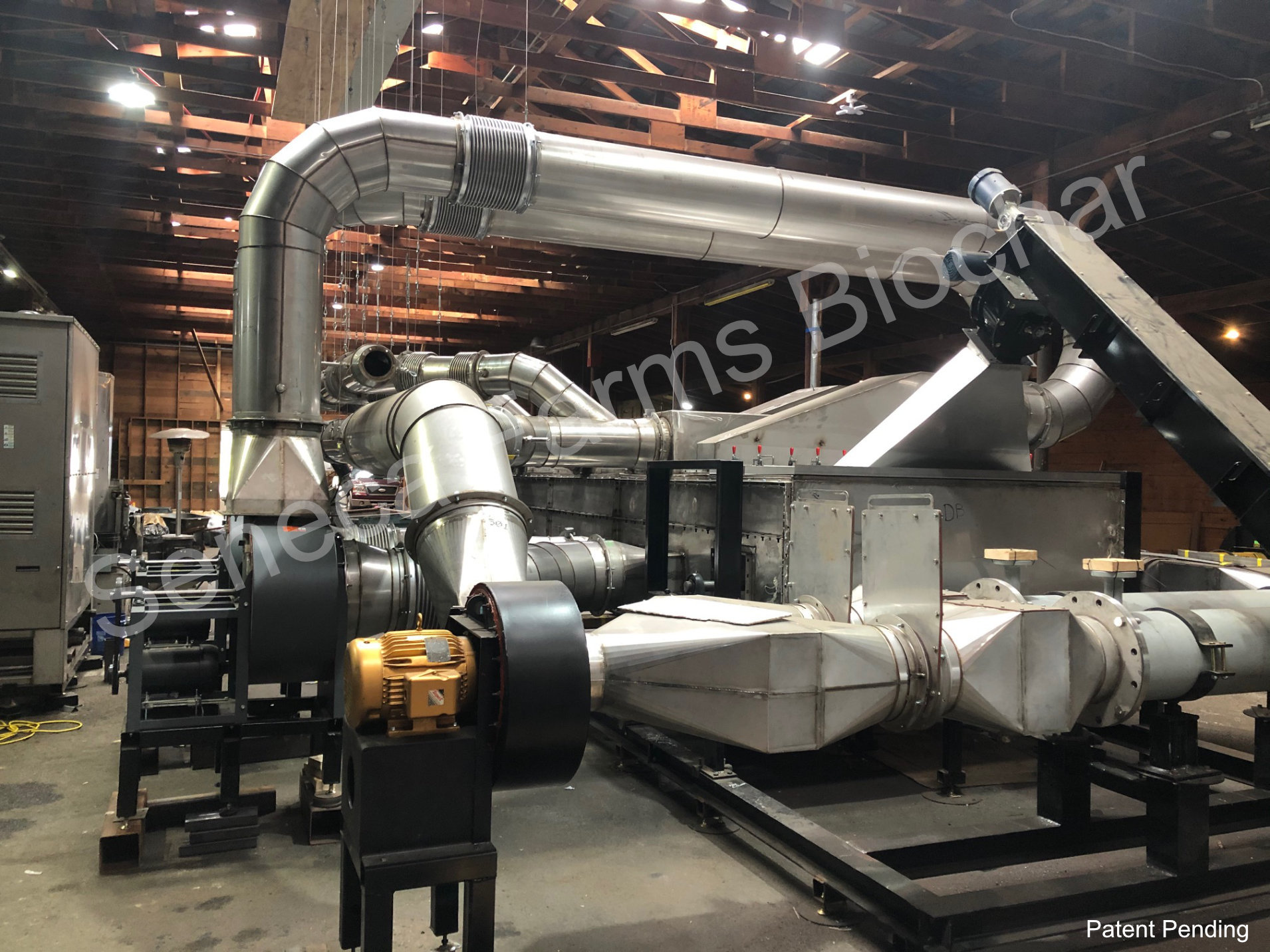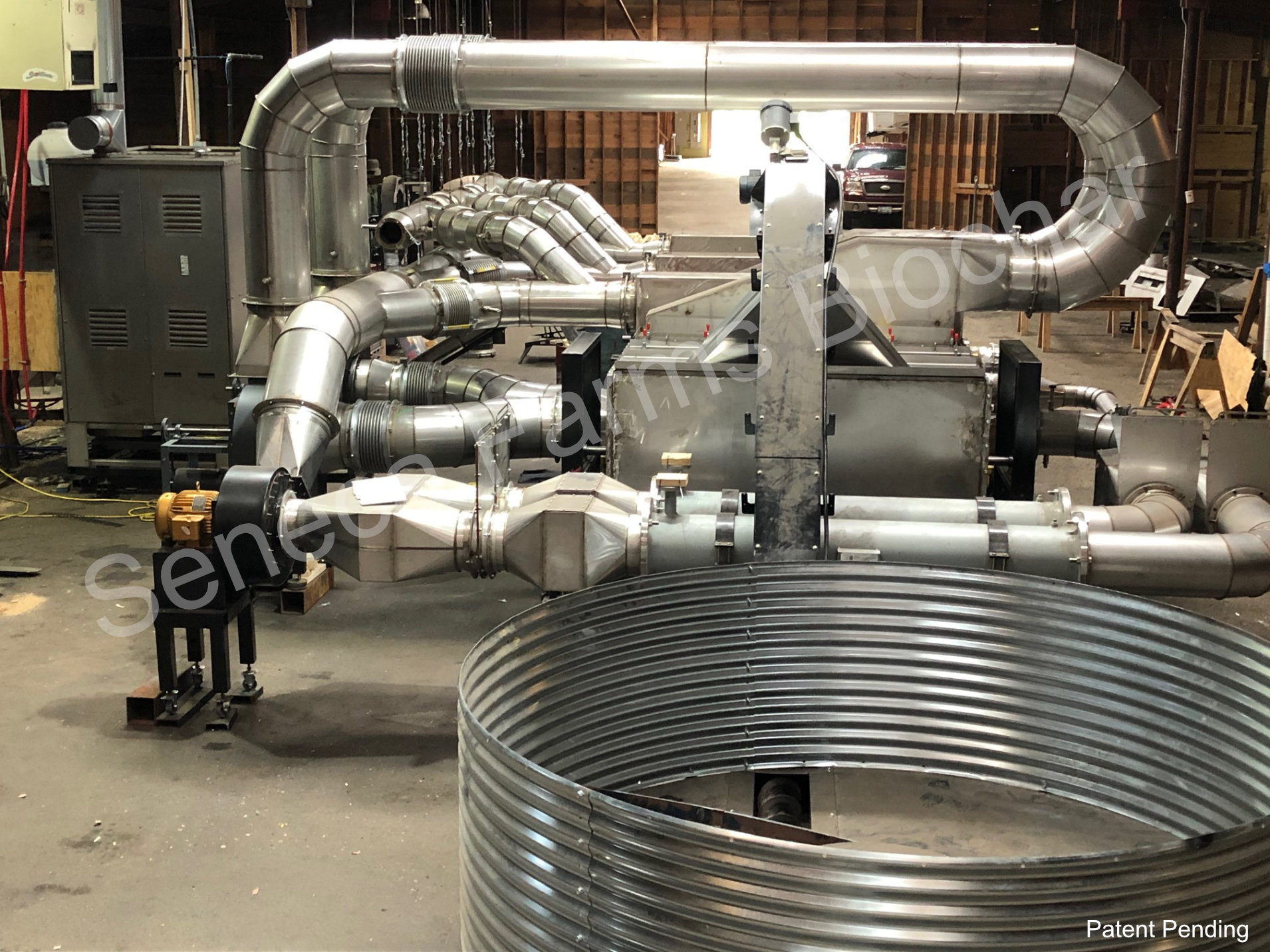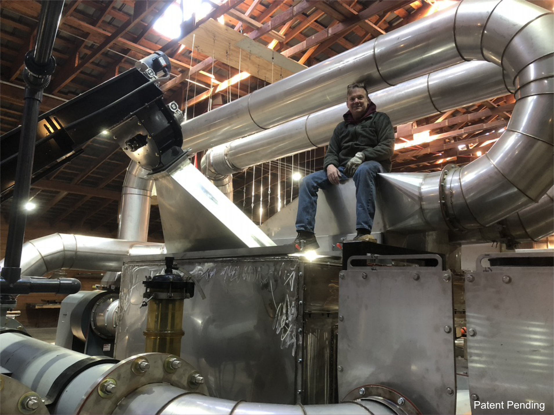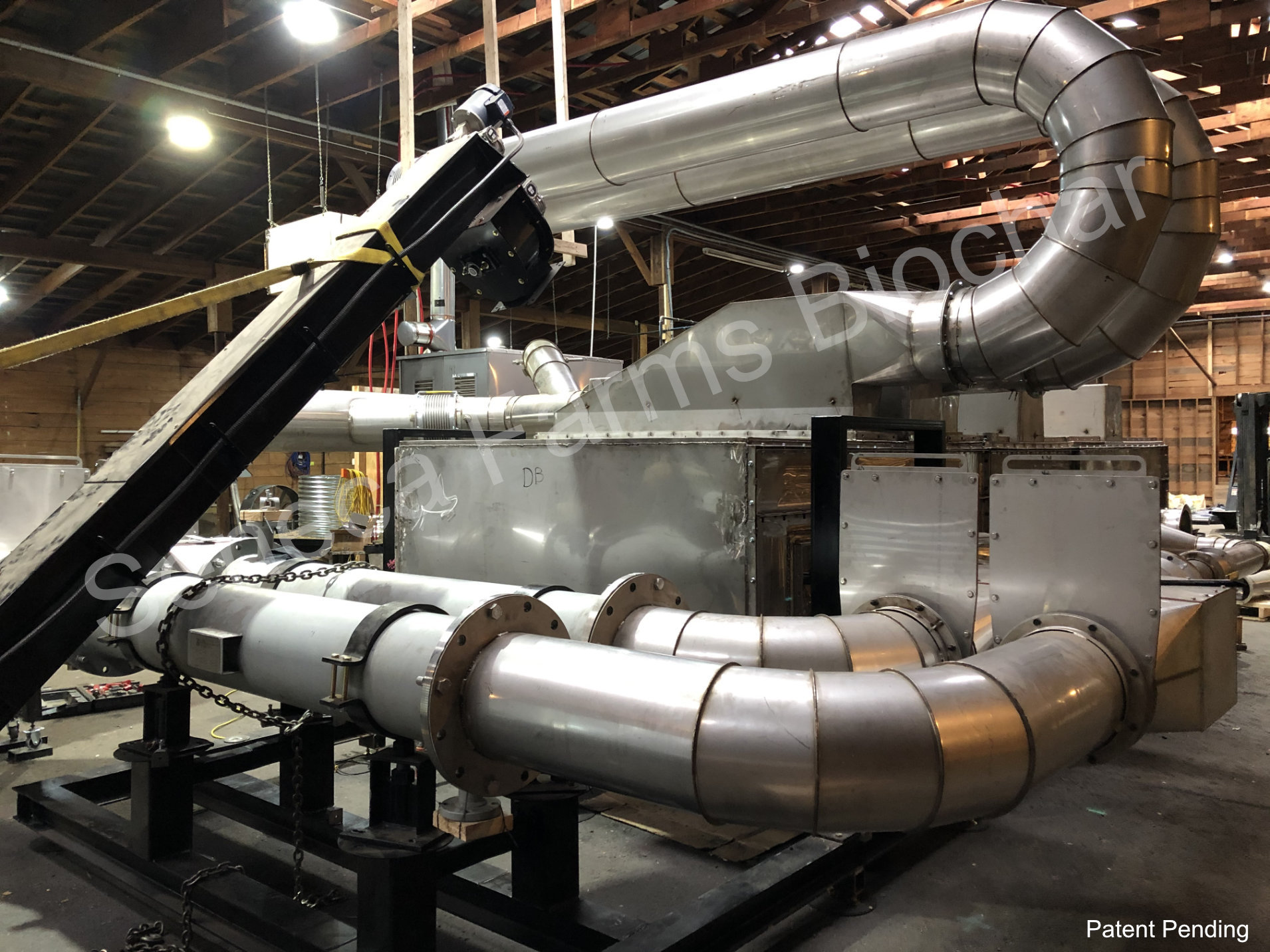 Repair and maintenance costs for rotary kilns tend to be high. Just taking it apart, or lifting it a bit to replace the bearings, can be a challenge because it is so heavy. And of course, all that steel is expensive to begin with. This approach to distribute heat might be fine for a clothes dryer, but when scaled up to tonnes of biomass, it is too primitive to have the versatility and financial performance we need for our product line.